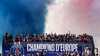 احتفل عشرات الآلاف من أنصار باريس سان جيرمان بفريقهم على جادة الشانزيليزيه الشهيرة في العاصمة الفرنسية باريس، الأحد، واستقبلوا أفراد الفريق بالأهازيج والأعلام والمفرقعات والهتافات المؤيدة.