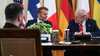 التقط ميكروفون مفتوح محادثة جانبية سرية بين الرئيس الأميركي دونالد ترامب ونظيره الفرنسي إيمانويل ماكرون في البيت الأبيض، الإثنين.