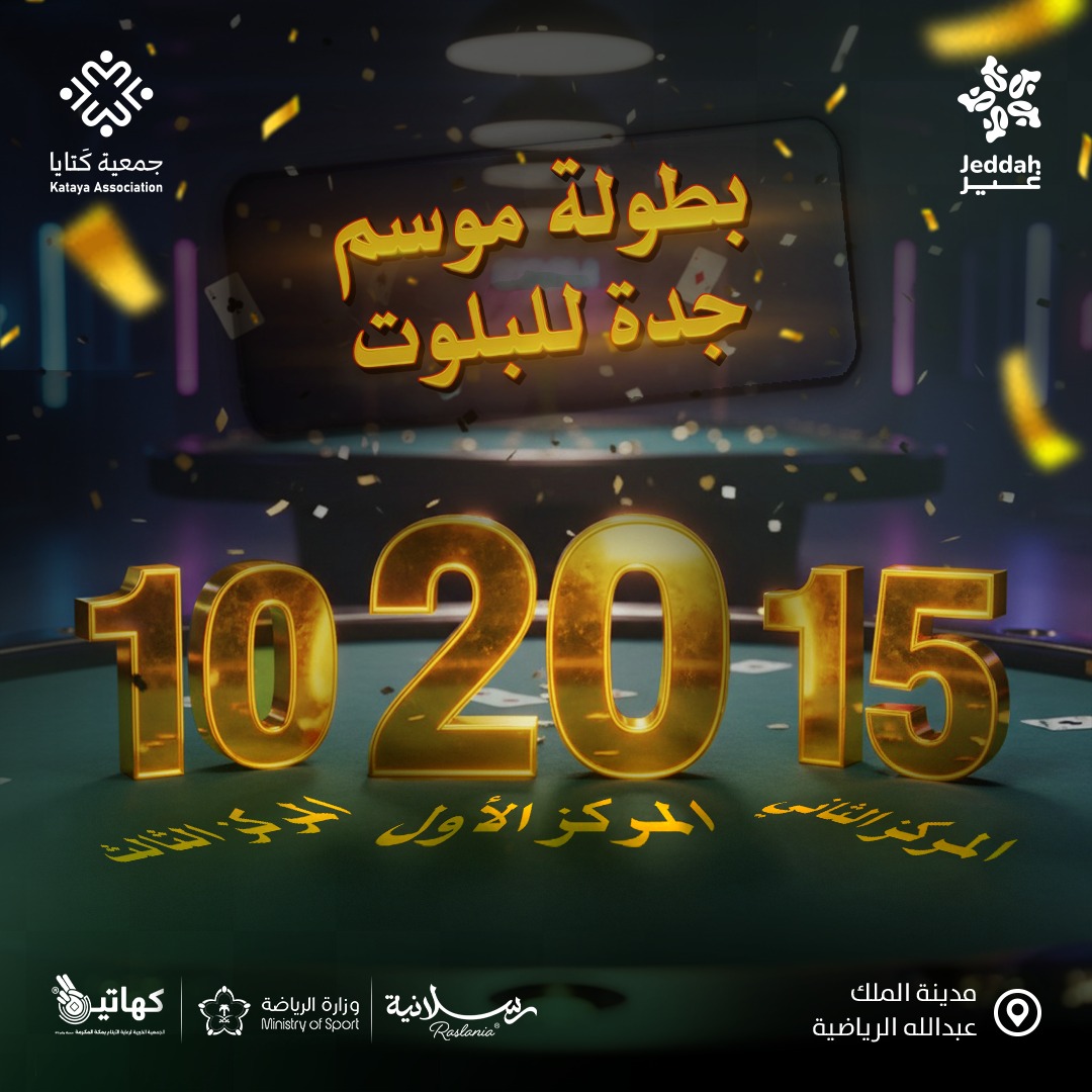 تنطلق، الثلاثاء، بطولة موسم جدة للبلوت والتي تنظمها جمعية كتايا للرياضات الذهنية، وتحتضنها مدينة الملك عبدالله الرياضية في جدة على مدى يومي 9 و10 سبتمبر الجاري.