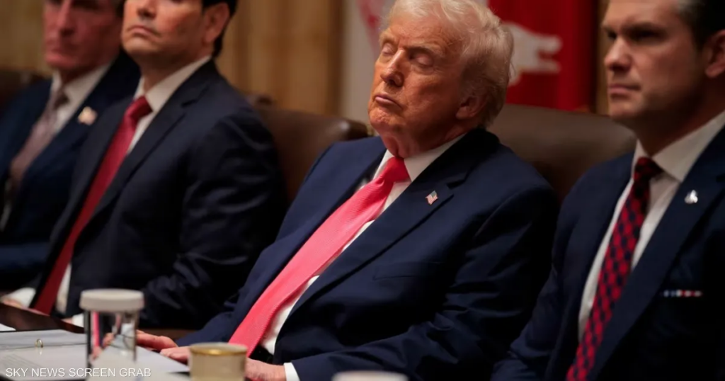 وبعدما ألقى روبيو نكتة حول مباريات كرة القدم الجامعية ضحك الوزراء الآخرون بصوت عالٍ، لكن ترامب لم يبد أي تفاعل، واكتفى برفع شفته بينما كانت عيناه مغمضتين.